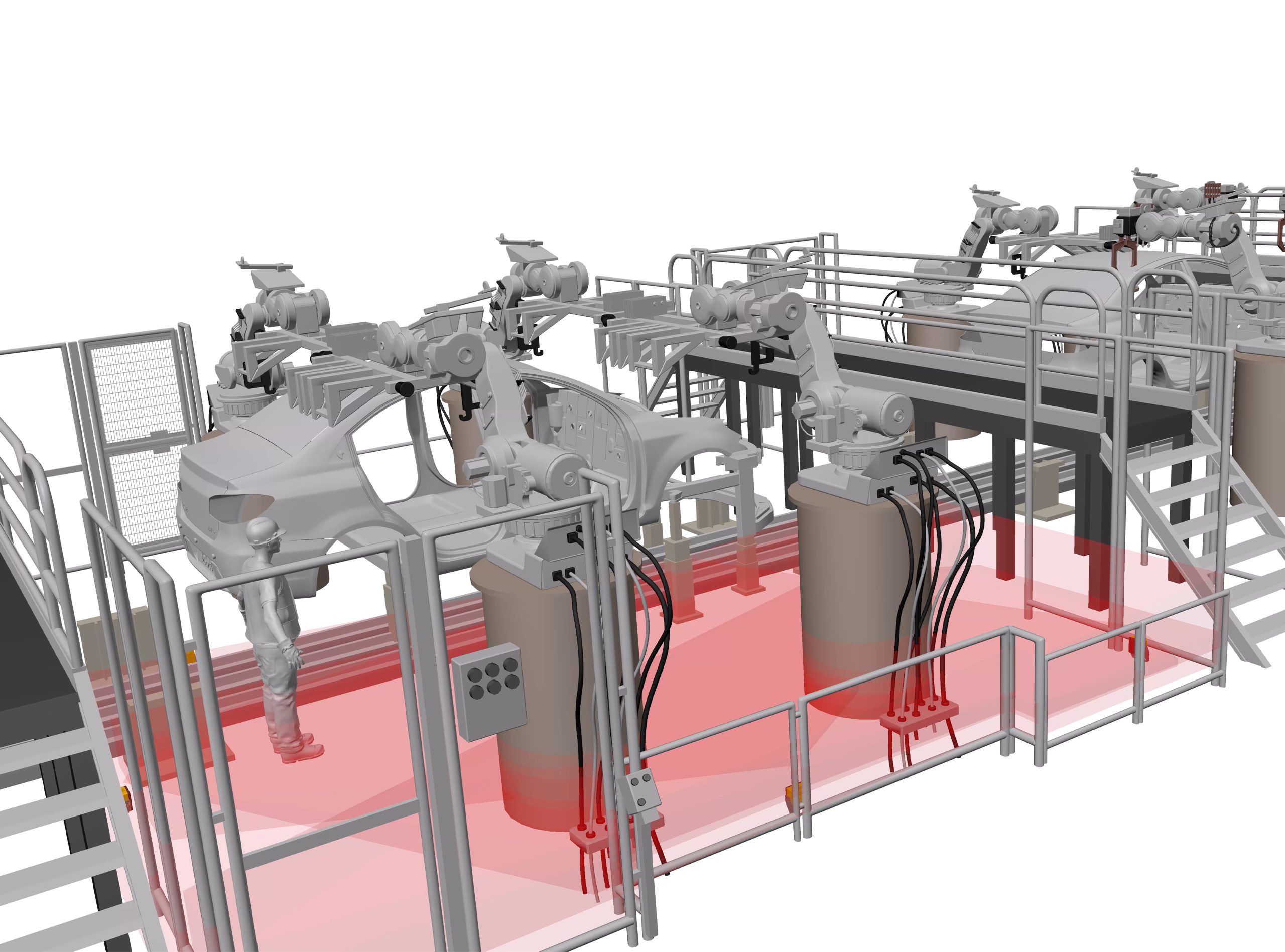 在汽车制造装配车间,区域安全扫描雷达通过创建灵活、可靠的安全防护边界,在复杂多变的环境中为人、设备与物料提供全天候保障